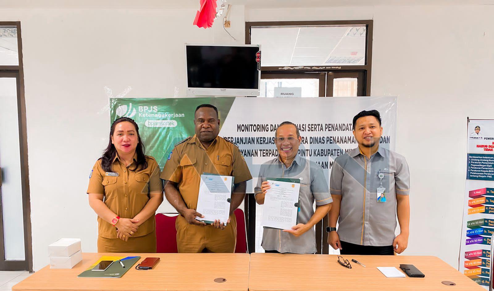 Penandatanganan kerjasama tersebut oleh Kepala Dinas PMPTSP dan Kepala Cabang BPJS Ketenagakerjaan Cabang Papua Mimika, Verry K Boekan yang berlangsung di Kantor Dinas PMPTSP, Jalan Cendrawasih, SP3, Selasa (23/8/2022).
