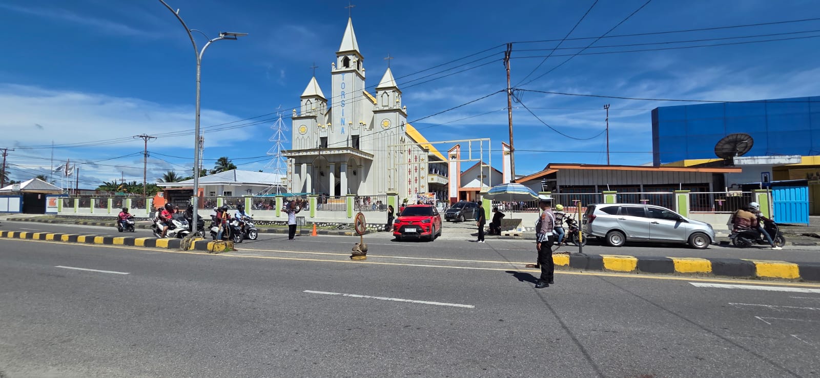 Timika, Antarpapua.com – Polres Mimika melaksanakan kegiatan pengamanan dan pengaturan arus lalu lintas dalam rangka mendukung kelancaran pelaksanaan ibadah Jumat Agung yang berlangsung pada, Jumat (18/4/2025).
