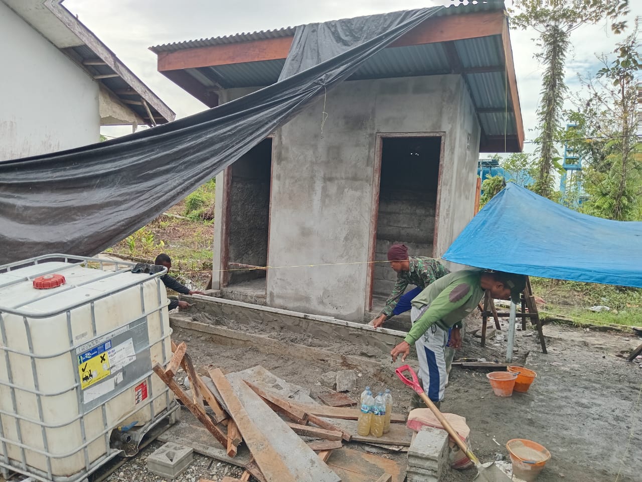 Proses pembangunan dipimpin oleh Sertu M. Rabani Ohoitenan yang turut memimpin personel Satgas TMMD dan warga setempat dalam melakukan pengecoran lantai teras MCK. Semangat gotong royong mewarnai jalannya pekerjaan yang dilakukan sejak pagi hari, meski di tengah kondisi cuaca yang cukup panas.
