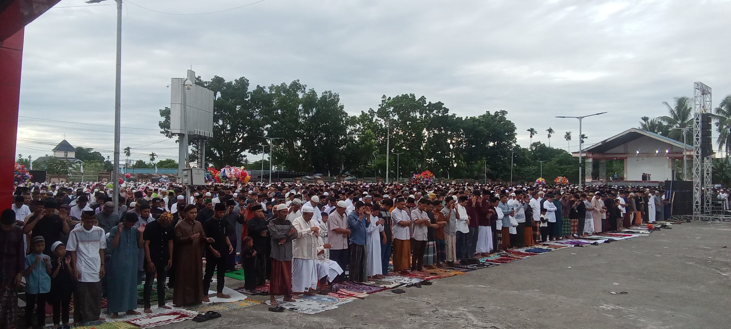 Sholat Idul Fitri dimulai pukul 07.00 WIT dengan Ustad Mahardika Haris sebagai imam dan Habib Helmi bin Khalid Al-Kaff sebagai khatib. Suasana penuh kekhusyukan terasa sejak awal hingga akhir pelaksanaan sholat.